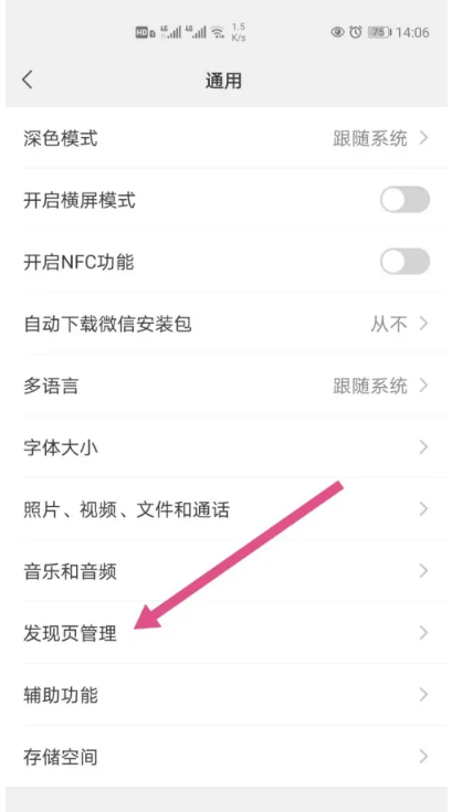 3、往下滑動(dòng)頁(yè)面,點(diǎn)擊選擇【發(fā)現(xiàn)頁(yè)管理】選項(xiàng)。