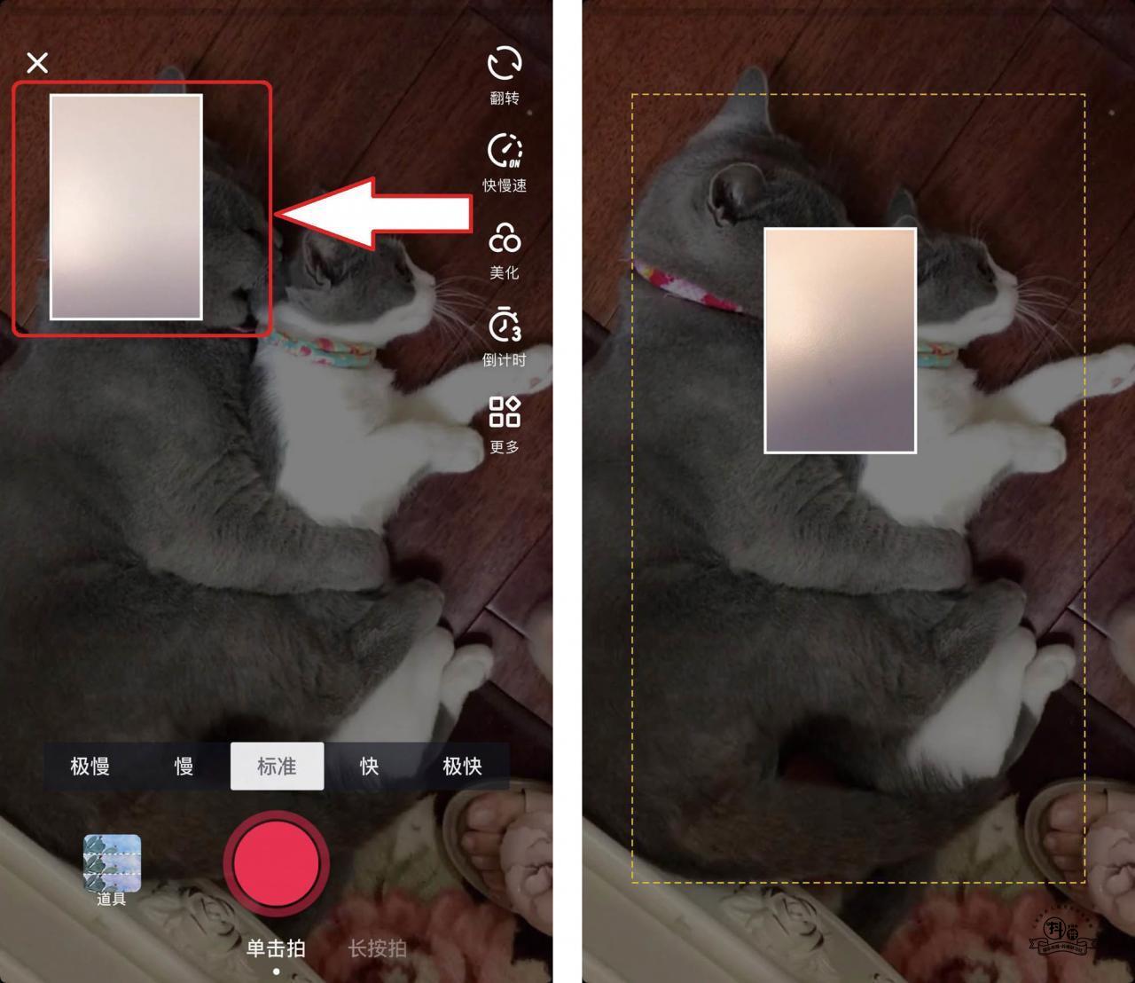 左邊白色區(qū)域就是正常拍攝畫(huà)面,其余的操作和正常拍視頻一樣,是不是特別方便?