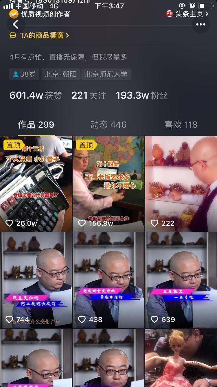 舉個(gè)具體的例子,我們比較早拆分的是“智哥大叔”這個(gè)賬號(hào)。這個(gè)賬號(hào)在其他平臺(tái)我們從沒(méi)見(jiàn)過(guò),應(yīng)該是抖音原生大號(hào)。它們的視頻平均點(diǎn)贊在1萬(wàn)左右,爆款視頻點(diǎn)贊20萬(wàn)+,目前已經(jīng)有190萬(wàn)粉絲。