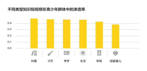 在青少年觀看的知識類短視頻中,科普、才藝、考學類分列前三??破疹?,包括自然科學、人文社科等;才藝類,包括聲樂、書法、舞蹈、手工、畫畫等;考學類,包括K12教育、本科教育、研究生教育等。