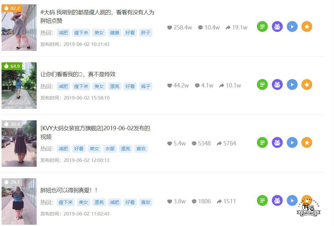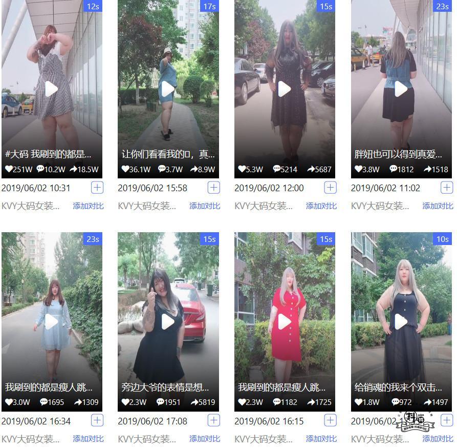 6月2號,KVY大碼女裝官方旗艦店這個抖音賬號,一天發(fā)布了10條視頻,而且每條視頻都超過了1w的播放量。而且視頻的內(nèi)容都是非常的簡單只是一個胖女孩在跳舞