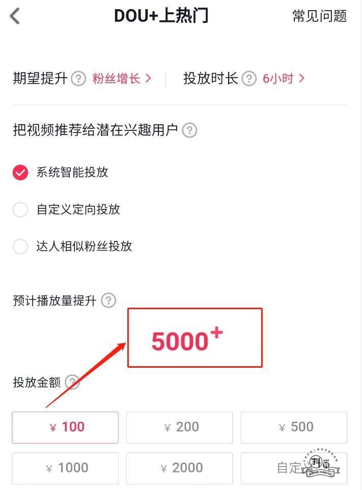 目前抖音官方給出的Dou+流量轉(zhuǎn)化:100元=5000播放量。