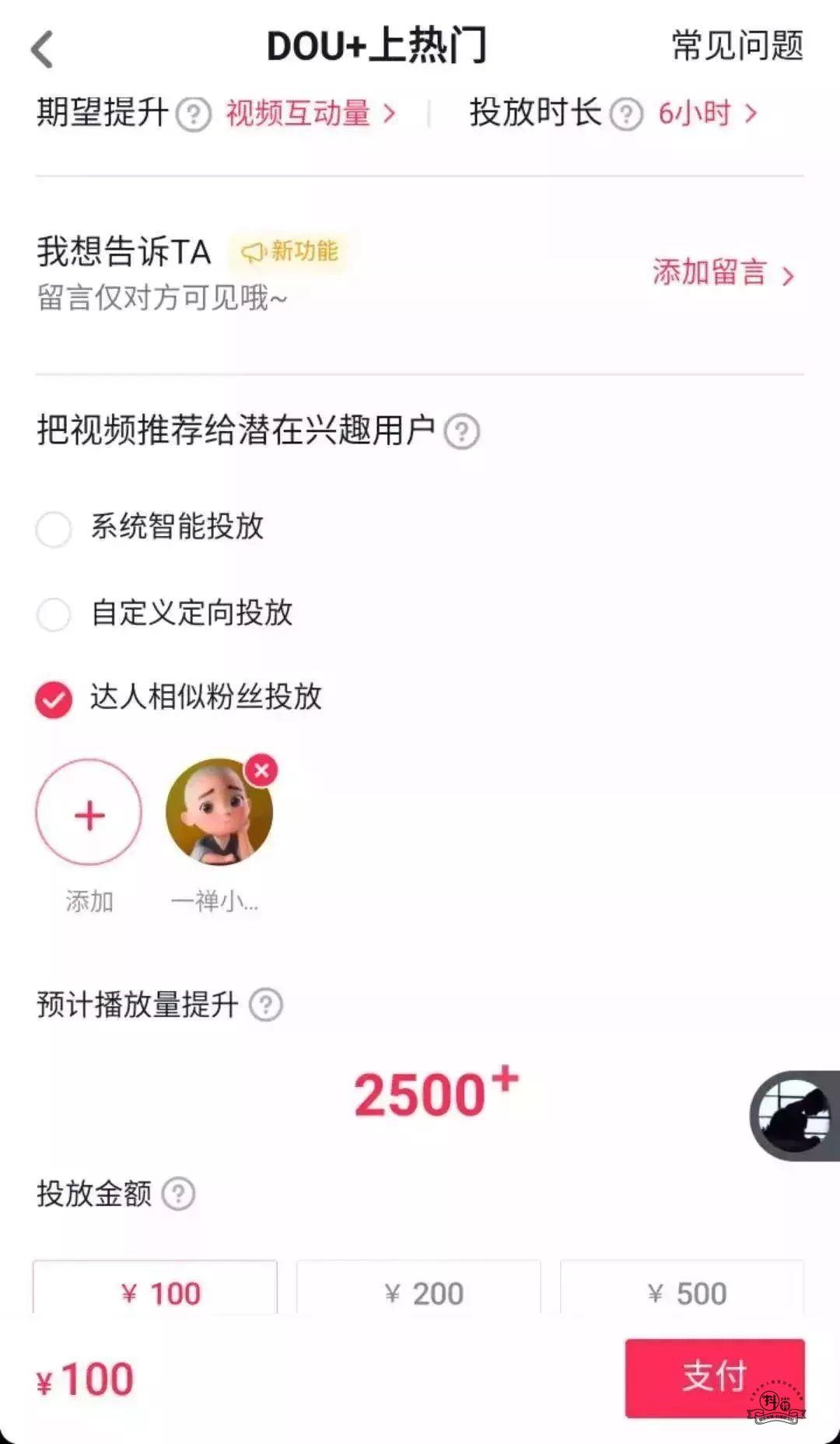 簡(jiǎn)單來(lái)說(shuō),就是花錢買流量。你可以給自己視頻投Dou+,也可以給別人投,只要有錢,人人都可以參與。
