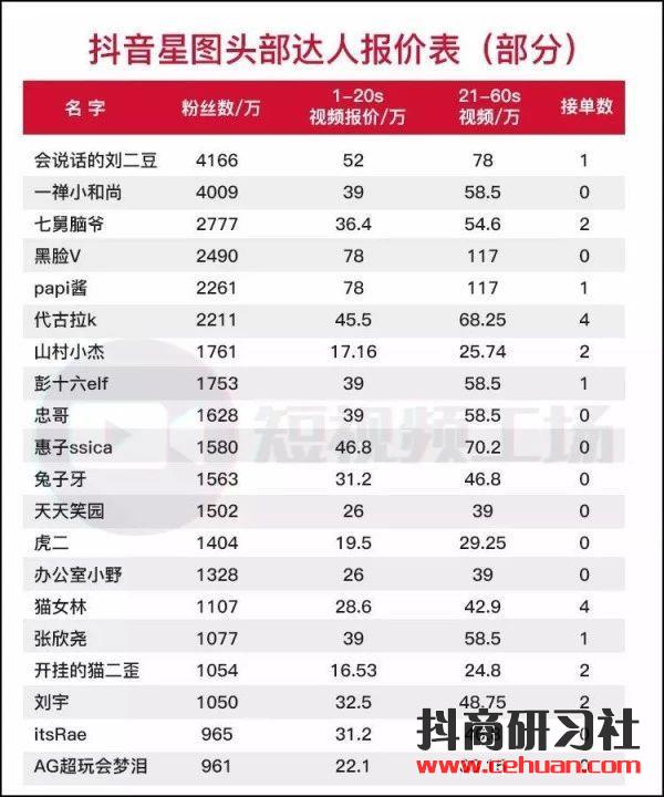 最近有人曝出抖音星圖平臺(tái)上頭部網(wǎng)紅的報(bào)價(jià),黑臉V和papi醬并列第一,廣告最高報(bào)價(jià)都在117萬(wàn) 。