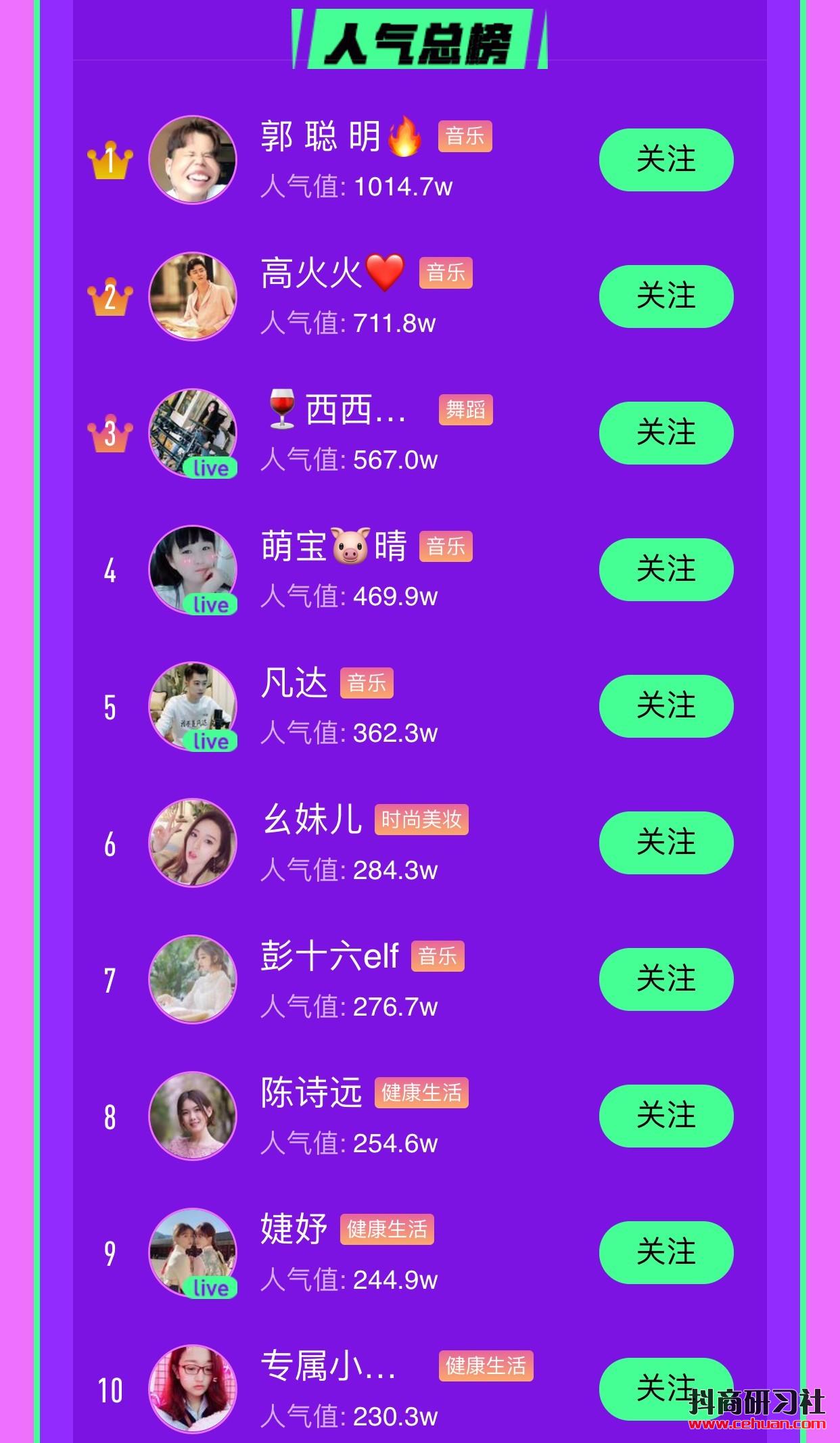 抖音人氣榜TOP10揭曉,抖音直播挑戰(zhàn)季還有多少意想不到?