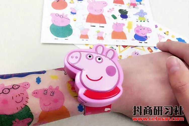 因此在抖音中,凡是帶有小豬佩奇的周邊產(chǎn)品都自帶話題流量和討論熱度,傳播迅猛,其中包括小豬佩奇周邊的奶糖手表、背包、存錢罐等,甚至是美團(tuán)外賣畫有小豬佩奇的小票單據(jù)都成了抖音的各大熱門。
