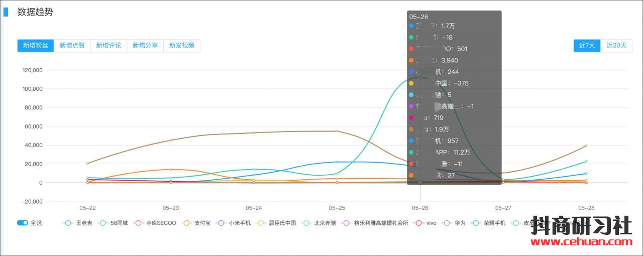 1、進入品牌官方號中,關(guān)注你想了解的品牌,并通過其賬號數(shù)據(jù)及時了解其運營動向,看哪些品牌對短視頻內(nèi)容的接受程度更高,最近是比較佛還是有大規(guī)模投放需求?