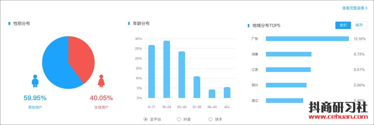 接著,回到該平臺總榜,查看該分類賬號在總榜里的上榜比例,去看該品類在平臺頭部的競爭性。