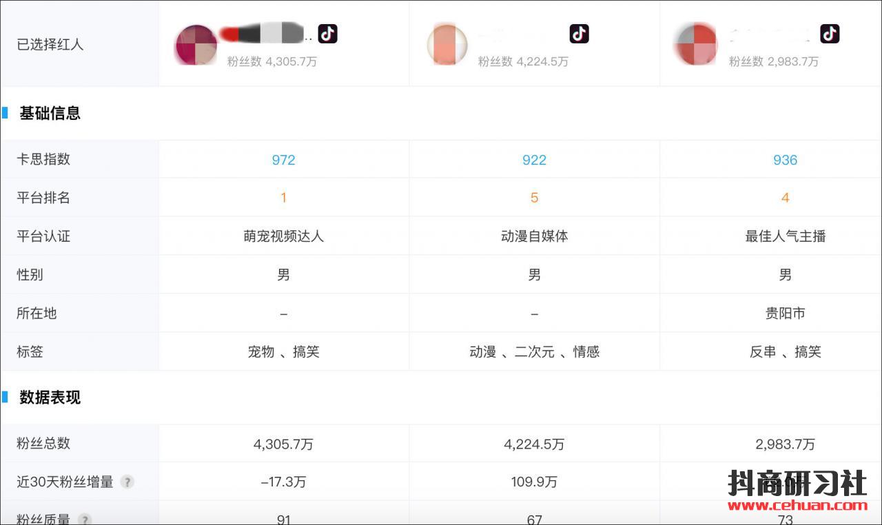 除了本領(lǐng)域被投放紅人,“紅人對比”同樣適用于競對紅人的競爭過程。第三階段,運用紅人對比、粉絲重合度、粉絲解析等數(shù)據(jù)指標(biāo),找出與競對紅人的不同之處。
