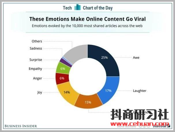 有一份數(shù)據(jù)圖表統(tǒng)計了那些推動內(nèi)容變得更流行的情緒,其中與愉悅感相關(guān)的驚嘆,笑聲,愉悅占了半壁江山。