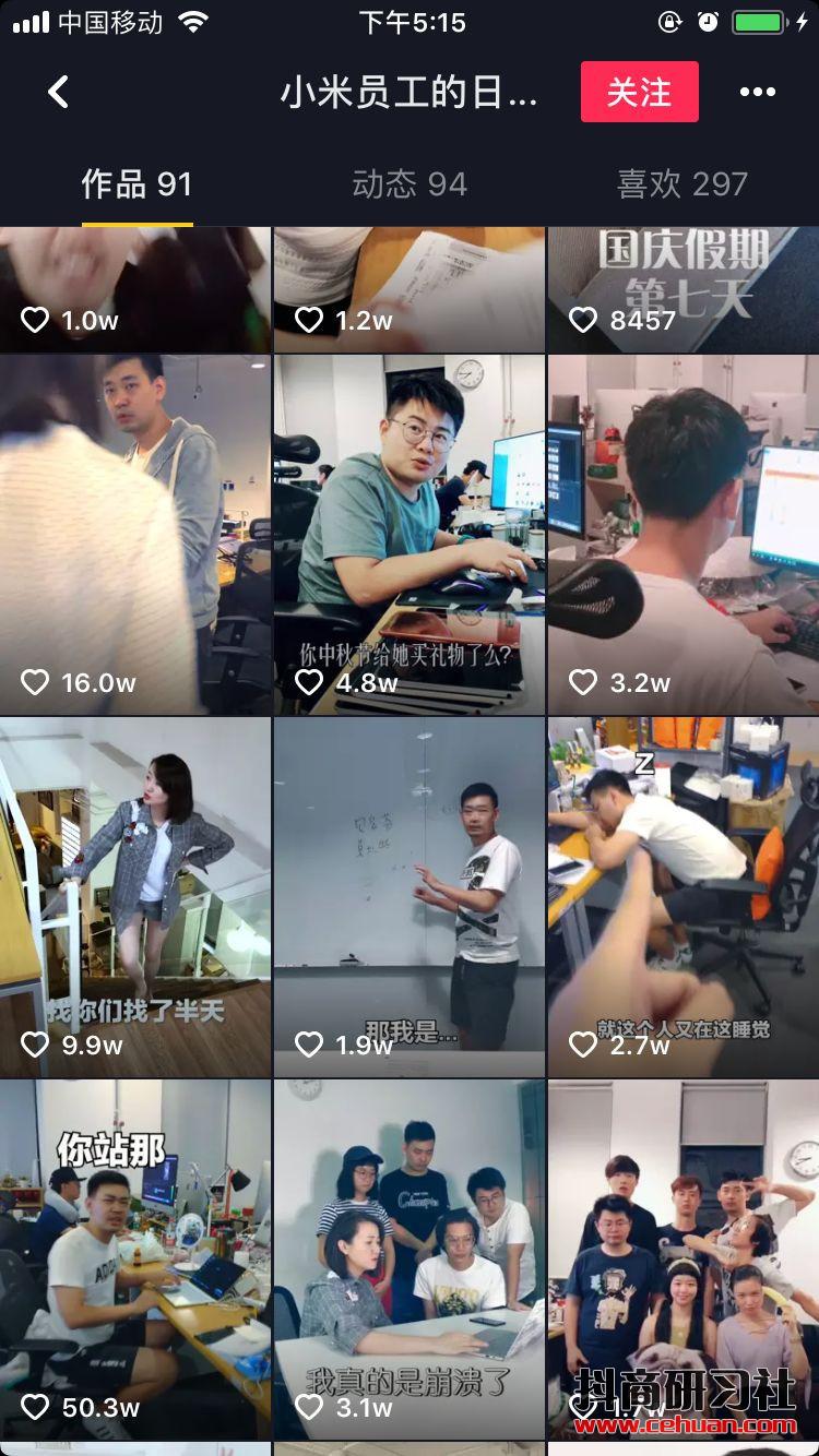 例如,小米的抖音賬號之一“小米員工的日常”,發(fā)布了一個關于辦公室趣事的視頻,一位員工在抖音上拍攝了視頻,得到了創(chuàng)意獎獎勵,他在同事面前炫耀,此時另外一個同事拿出了很多他得過的創(chuàng)意獎項,用實力“碾壓”了炫耀的同事,同時搭配背景音樂和道具,吸引了大量網(wǎng)友去圍觀和評論,該視頻獲得了17.9萬的點贊量。