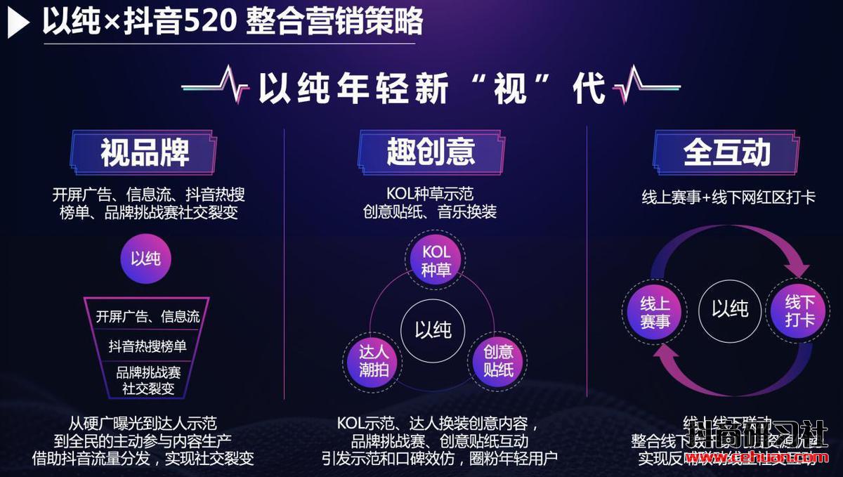 內(nèi)容型社交也是抖音的一大核心走向。品牌可借此找到與用戶強(qiáng)相關(guān)的興趣點(diǎn),形成強(qiáng)連接。把握這一要義,以純攜手抖音商業(yè)化開(kāi)始了基于內(nèi)容創(chuàng)新的社交營(yíng)銷。
