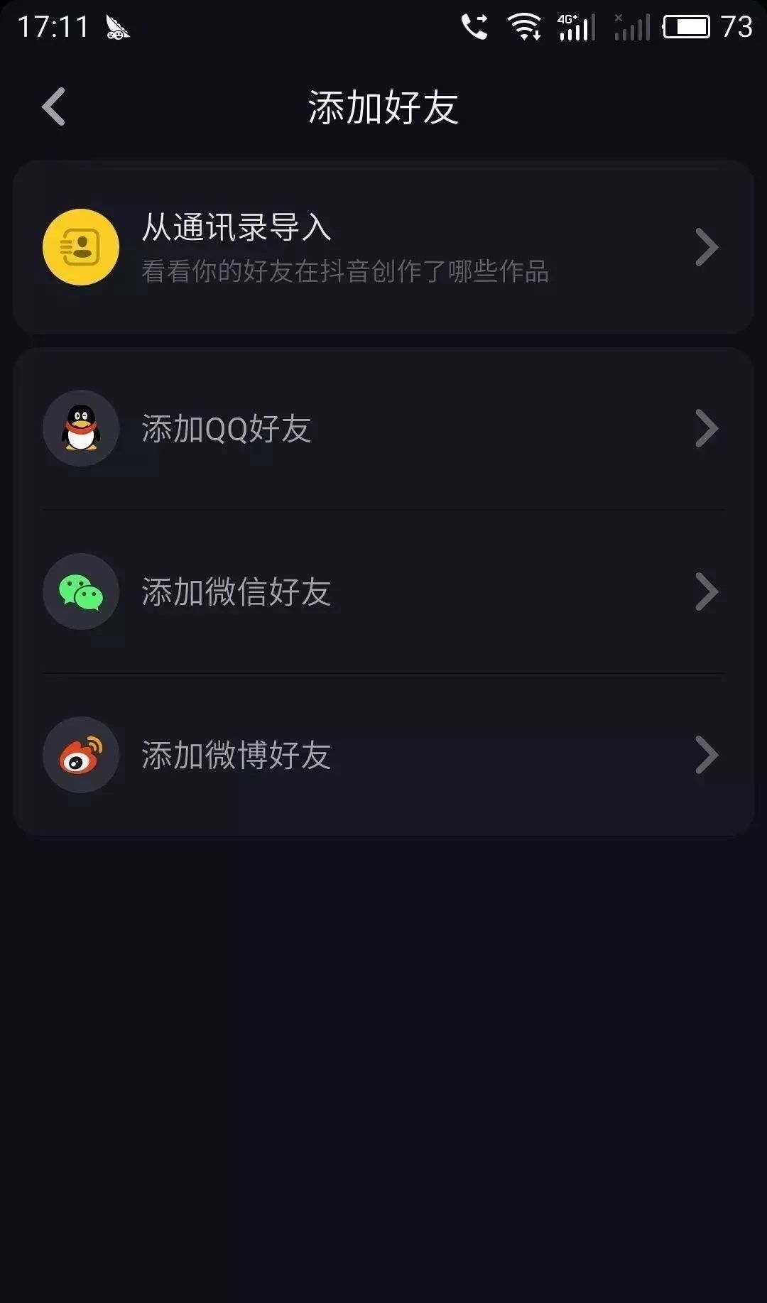 雖說抖音一直宣揚“去中心化”的UGC(UGC 互聯(lián)網(wǎng)術(shù)語,全稱為User Generated Content,也就是用戶生成內(nèi)容,即用戶原創(chuàng)內(nèi)容)思想 ,但在發(fā)展初期的運營策略卻無一不圍繞著“中心化”的PGC:聯(lián)絡(luò)直播平臺家族公會、從美拍批量導(dǎo)入KOL和承接頭條的明星資源,做以KOL為核心的粉絲傳播吧;初期抖音專門開辟了一個頁面用于添加好友,可從通訊錄、QQ、微信、微博添加好友。