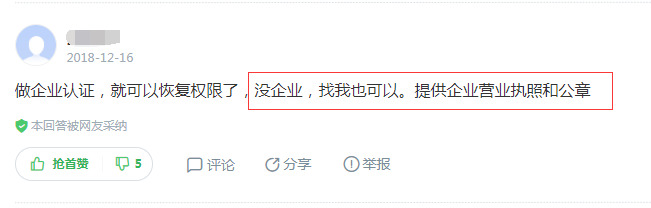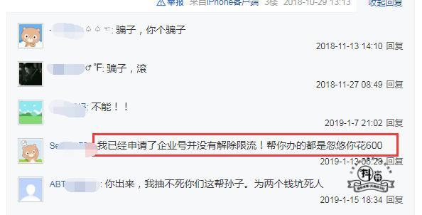 現(xiàn)在市面上出現(xiàn)了很多幫助企業(yè)認(rèn)證藍(lán)V的中介“公司”,他們所謂的開(kāi)通企業(yè)賬號(hào)就能幫助解封或者是解除賬號(hào)評(píng)級(jí)帶來(lái)的流量限,如下圖↓↓↓