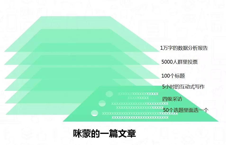 這是咪蒙對一個現(xiàn)象進行的1萬字的數(shù)據(jù)分析報告,從5000個人里投票,每一個標題都要起100個標題。