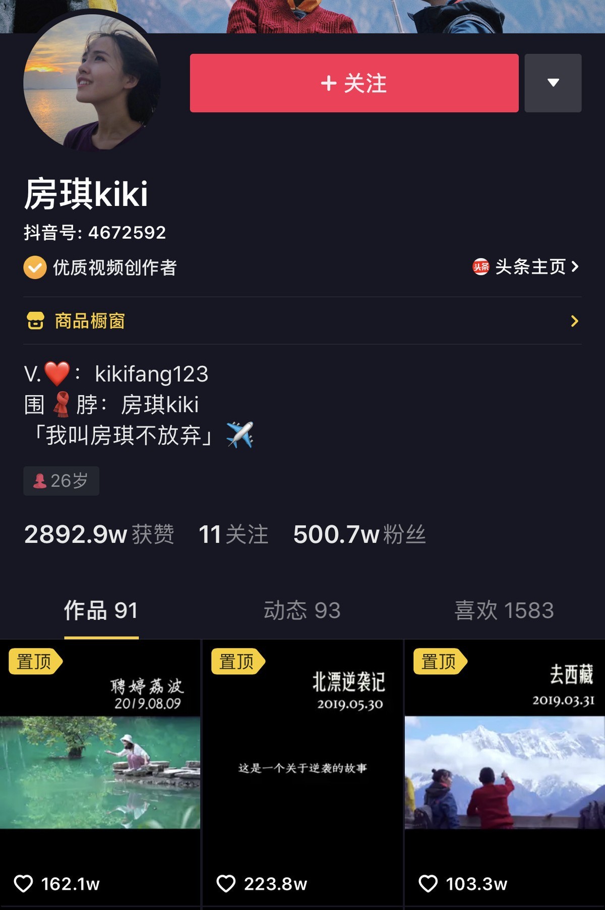 她是@房琪kiki (抖音號(hào):4672592),一個(gè)一年中有超過(guò)300天都行走在路上的姑娘。