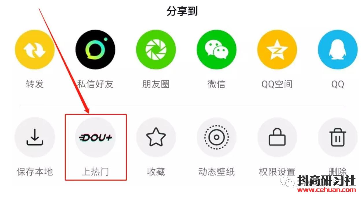 操作很容易:點擊抖音視頻播放界面右下角「…」,進入下級菜單,就能進入Dou+上熱門。