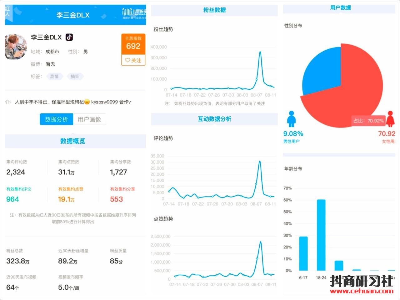 ▲ “李三金DLX”抖音號(hào)卡思數(shù)據(jù)詳情頁(yè)(部分)