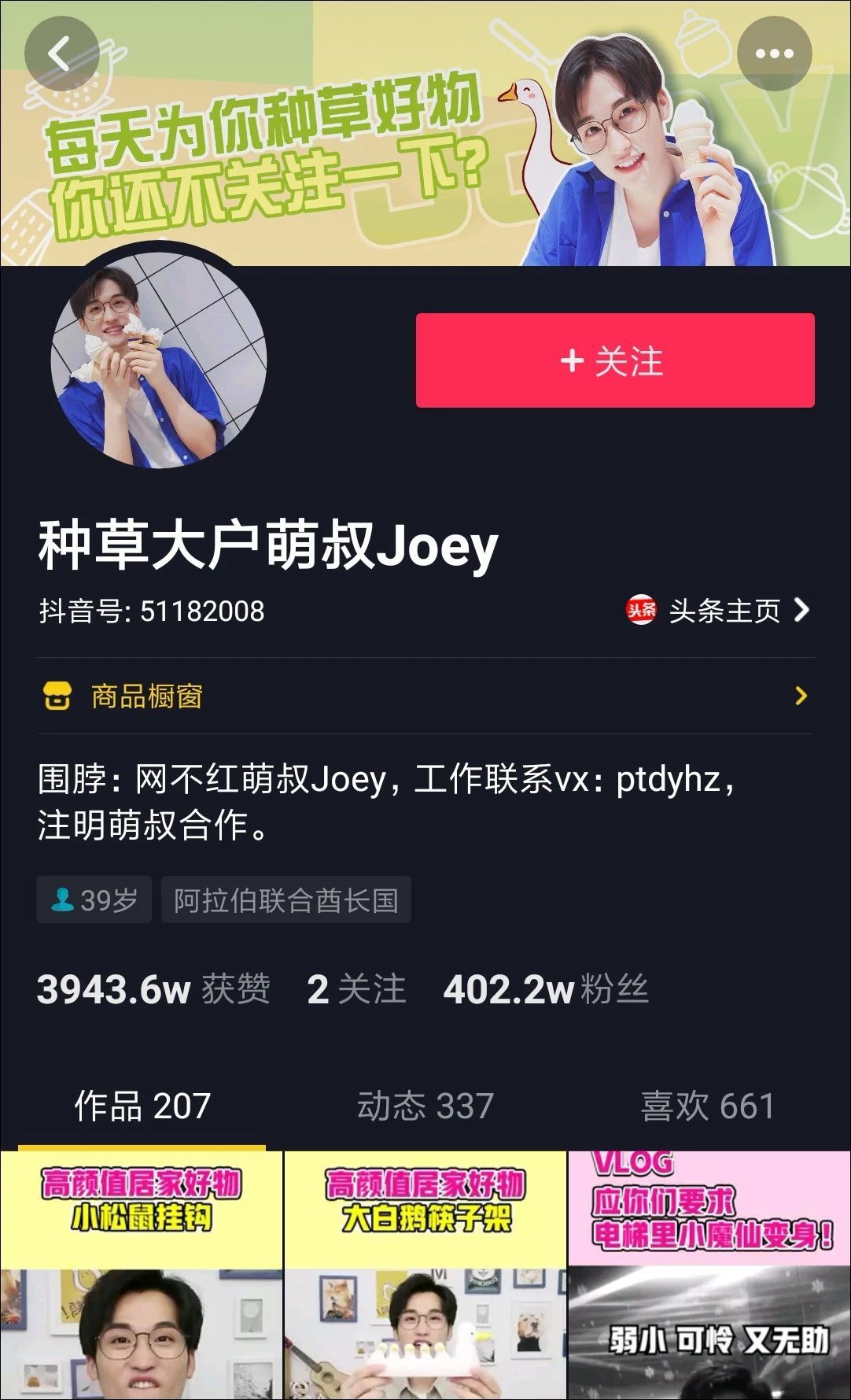 比起微博的大號,這個小號的內(nèi)容更加垂直化。 目前從數(shù)據(jù)來看,“種草大戶萌叔Joey”的表現(xiàn)也是十分亮眼,目前發(fā)布204個視頻,已有402萬粉絲,獲3943萬個贊,最近發(fā)的一條視頻點贊量也高達101萬。
