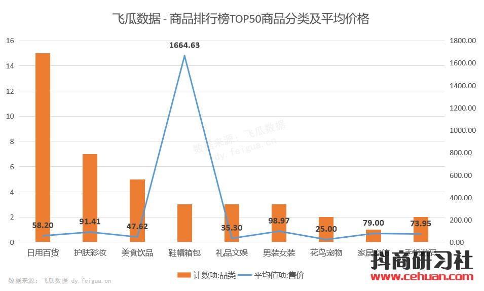 為了能讓帶貨播主了解節(jié)假日期間抖音上爆款商品具有哪些特征,我們通過飛瓜數(shù)據(jù)采集到了小長假期間的(10.1-7)商品排行榜TOP50的具體數(shù)據(jù)。
