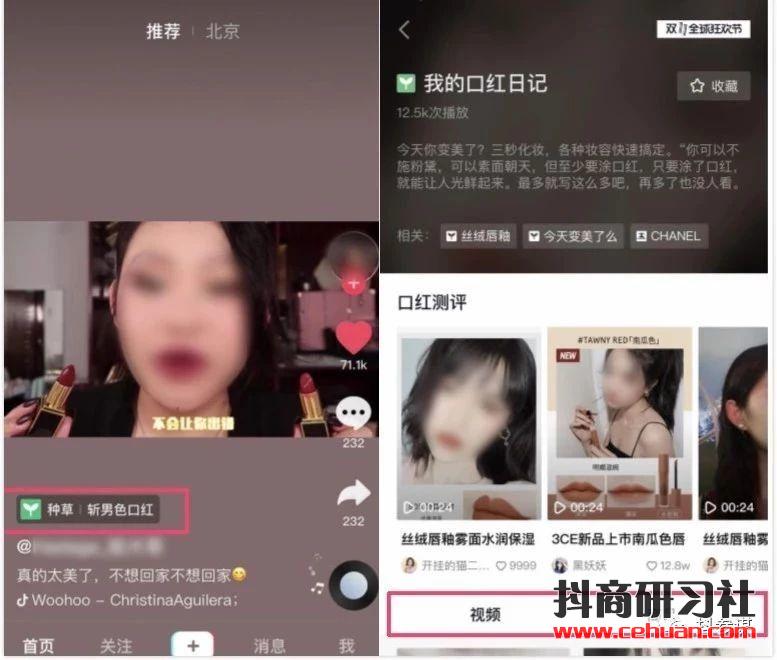 如下圖當(dāng)視頻左下角打上“種草標(biāo)簽頁(yè)”標(biāo)簽后,經(jīng)過(guò)篩選的優(yōu)質(zhì)視頻會(huì)進(jìn)入標(biāo)簽頁(yè)。