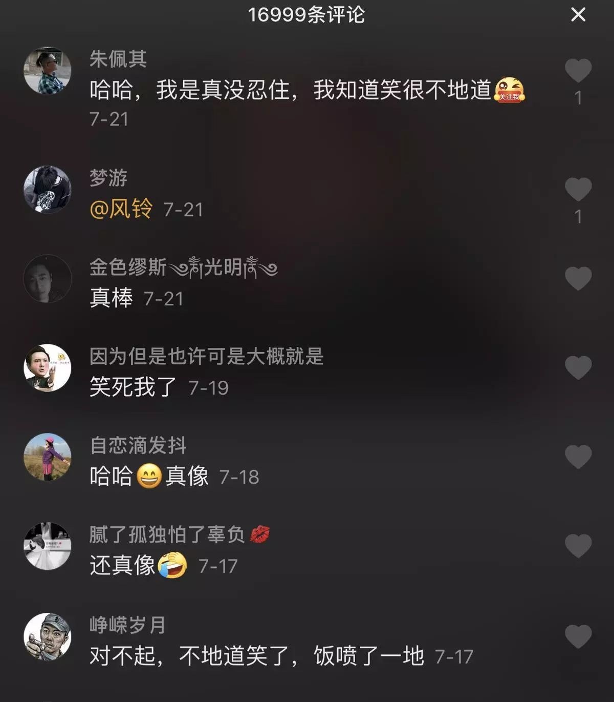 “哈哈哈哈哈哈,笑死我了”是暢暢的視頻里最常出現(xiàn)的評(píng)論。每次刷到這種留言,暢暢總是打心底里感到高興,“現(xiàn)在大伙兒的生活壓力都挺大的,讓人哭很容易,但你要讓人笑很難。”