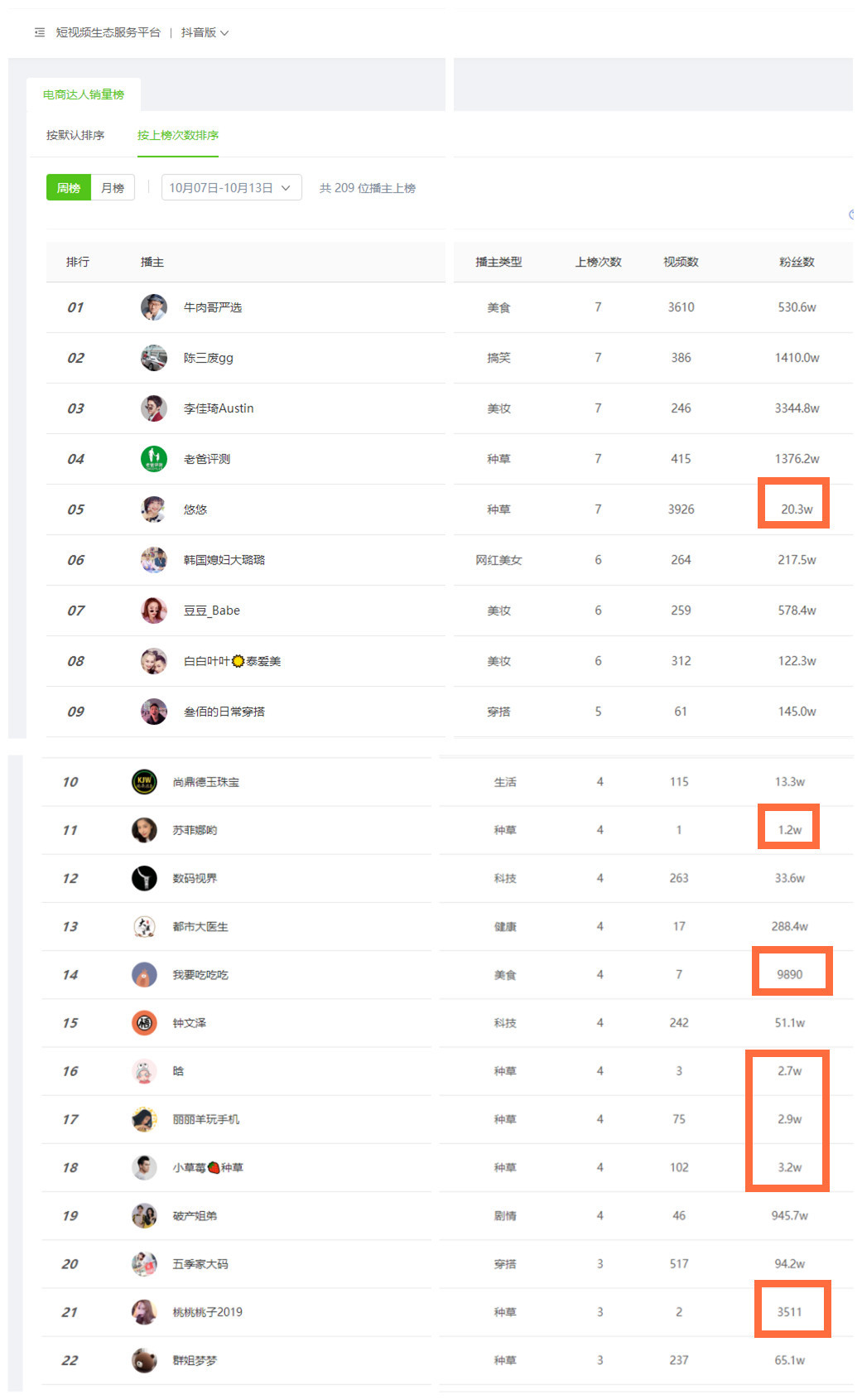 此表再次說明粉絲數(shù)≠賣貨能力,抖音已經(jīng)進(jìn)入帶貨模式2.0。