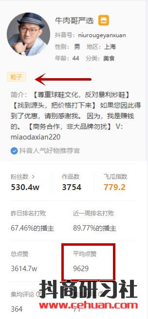 這說明,其實(shí)牛肉哥這個(gè)賬號(hào)最好的數(shù)據(jù)都來源于球鞋,鞋子類的商品。我小聲嗶嗶一句,如果牛肉哥去帶美妝,那肯定是要撲街的,這就涉及到另一個(gè)話題,也就是抖音對(duì)賬號(hào)打標(biāo)的問題。