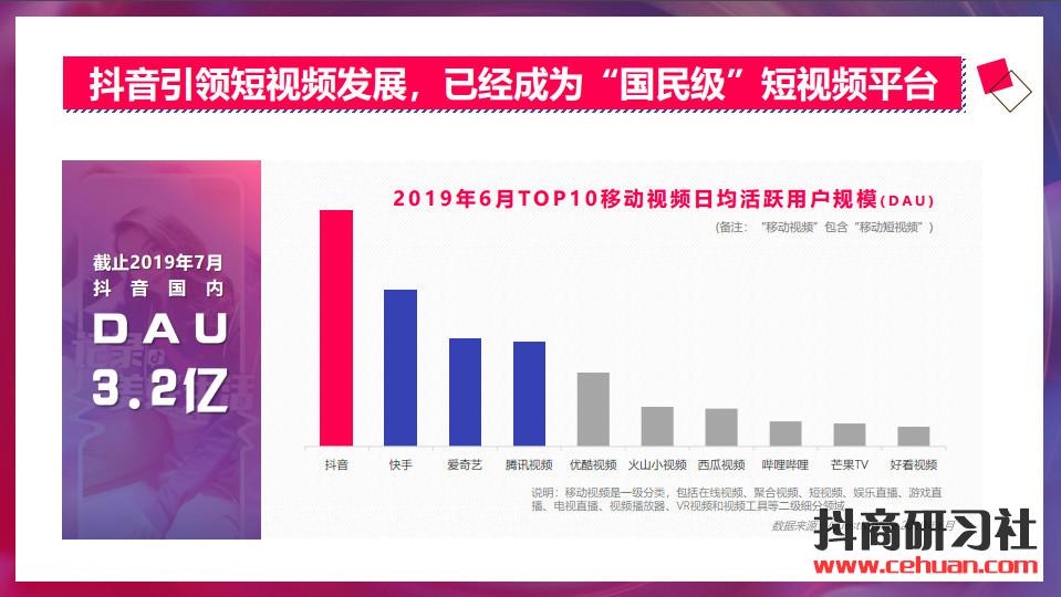 而在所有的短視頻應(yīng)用里面,抖音憑借著有趣、好玩、創(chuàng)意、漂亮的小哥哥/小姐姐,注冊用戶超過8億,國內(nèi)日活高達3.2億。毫無懸念的成為了“國民級” 的手機APP;成為短視頻行業(yè)里面用戶規(guī)模最大、用戶使用時長最多 的短視頻平臺。