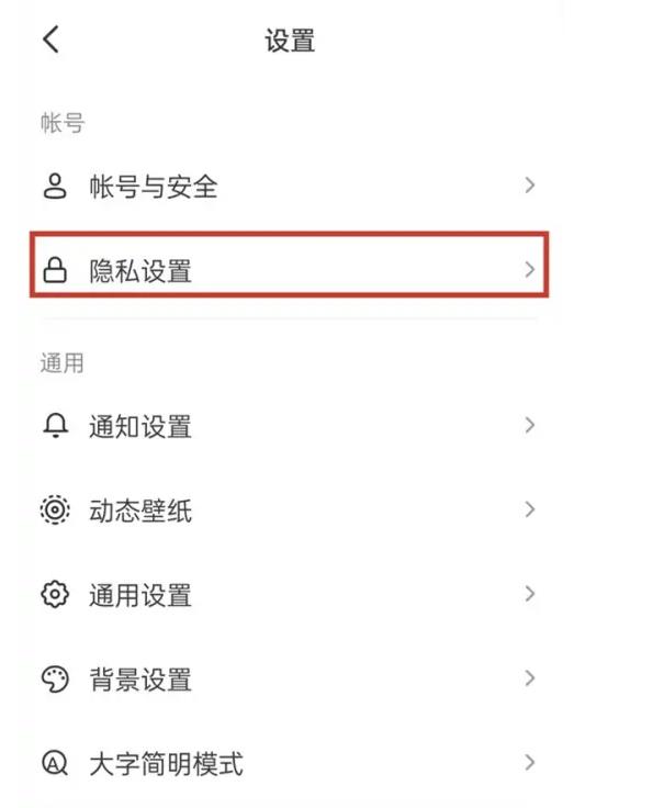 3、在隱私設(shè)置里點(diǎn)擊點(diǎn)贊選項(xiàng)