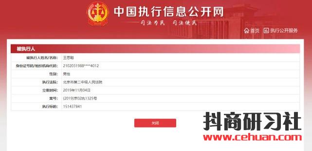11月4日,王思聰被北京市第二中級(jí)人民法院列為被執(zhí)行人,執(zhí)行標(biāo)的約1.5億元。