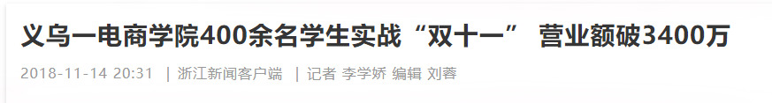 據(jù)了解,這已經(jīng)是該校學(xué)生第二年實(shí)戰(zhàn)“雙11”了,2018年11月11日當(dāng)天,電商學(xué)院的400余名學(xué)生促成訂單100余萬單,網(wǎng)店?duì)I業(yè)額超3400萬。