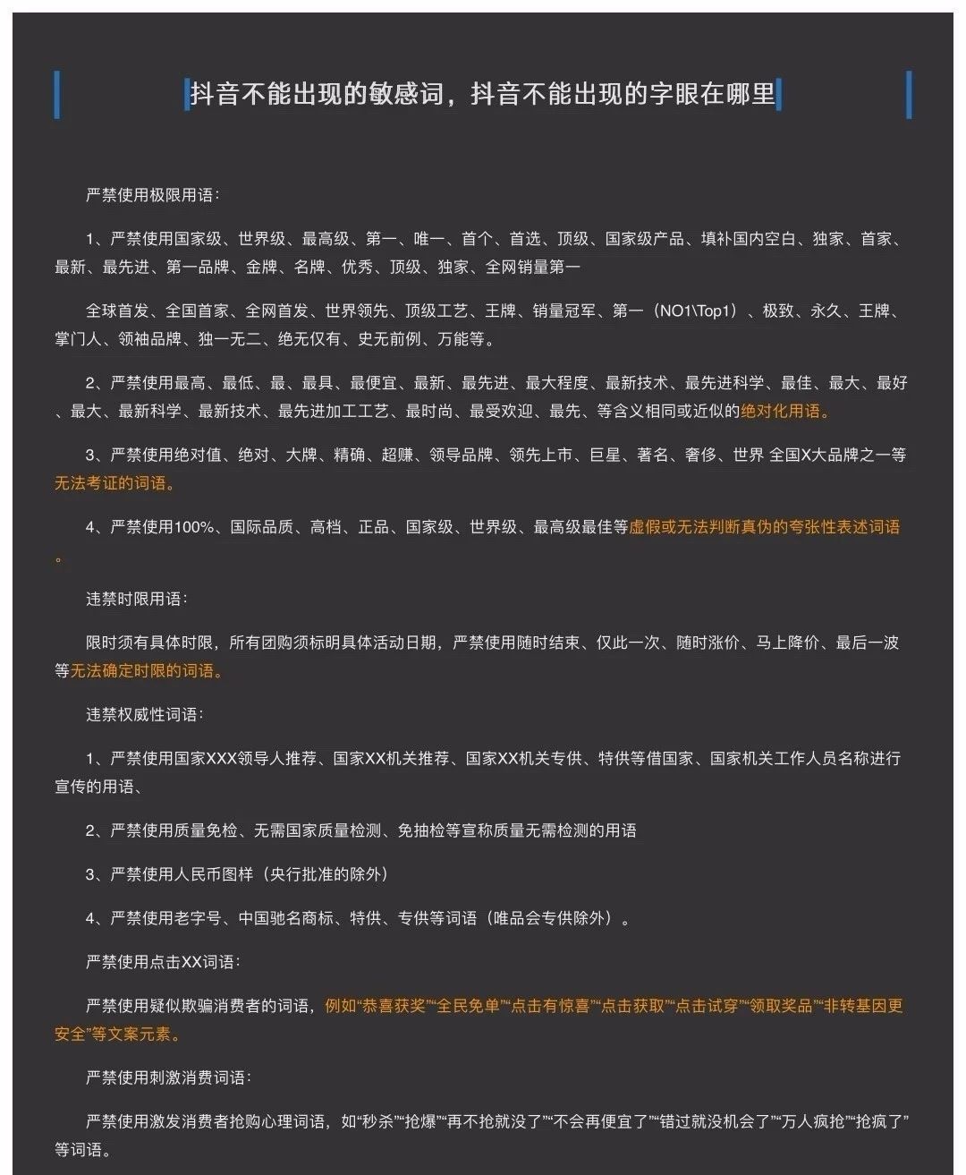 抖音不能出現(xiàn)的敏感詞