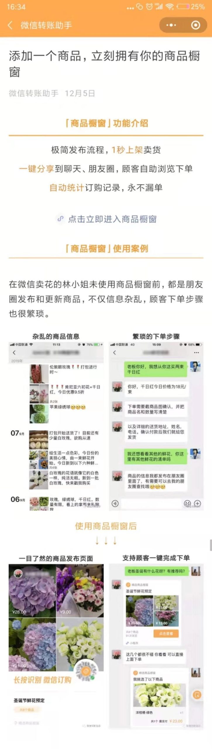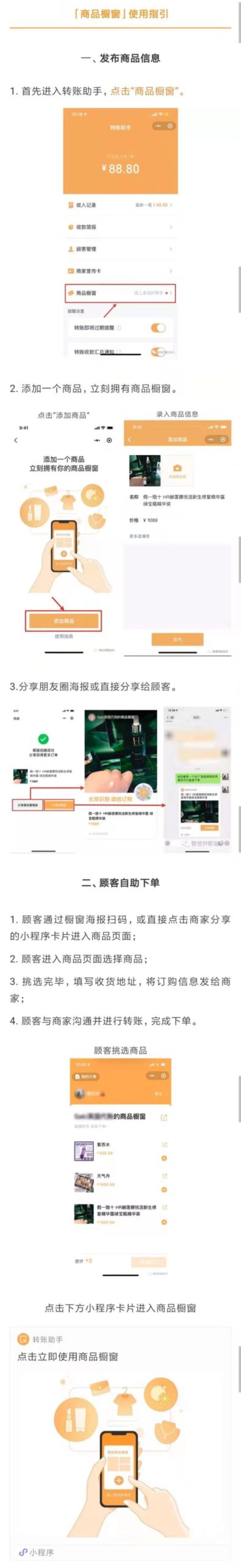 下面是微信轉(zhuǎn)賬助手小程序發(fā)布的官方版微信商品櫥窗使用指引: