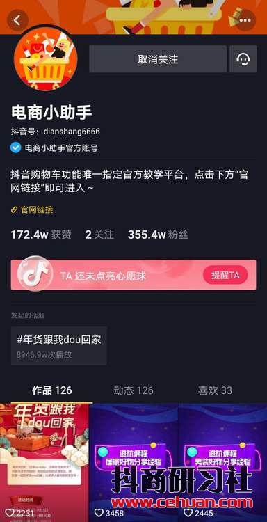 電商小助手是抖音購物車功能唯一官方教學平臺賬號。