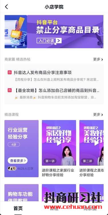 小店學院是為所有開通商品櫥窗功能的用戶提供的專屬學習頻道,已經開通相關權限的小伙伴可以通過路徑: