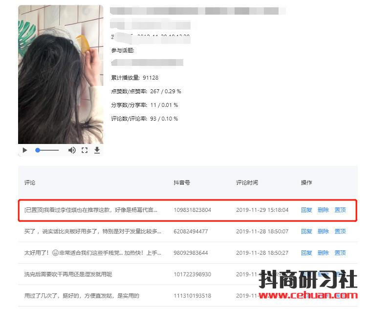 1.評(píng)論置頂 需要在電腦端操作,登錄抖音后臺(tái)管理之后,就有評(píng)論置頂?shù)墓δ?。被置頂?shù)脑u(píng)論將保持在評(píng)論區(qū)最上方顯示。
