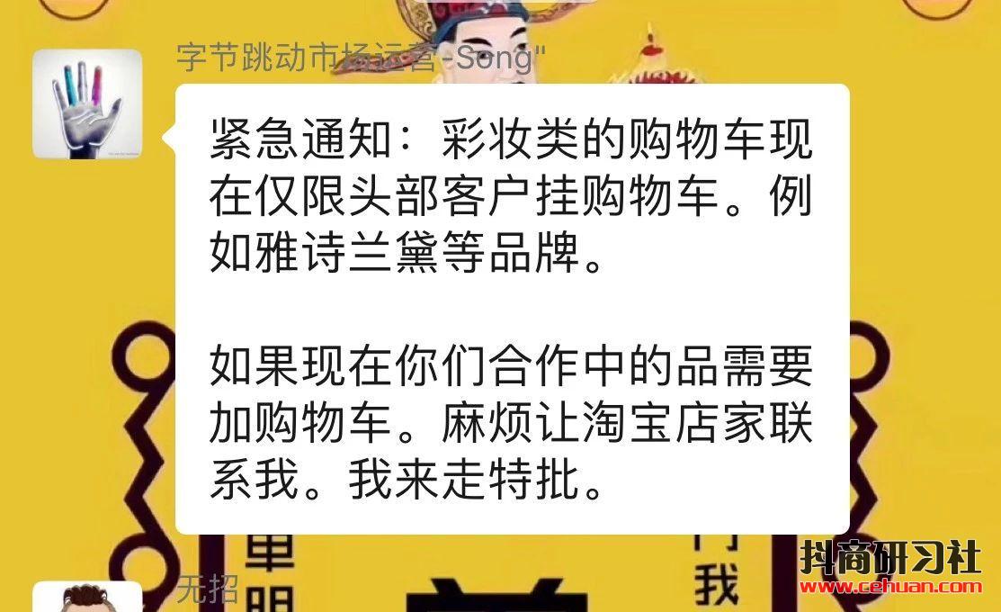 而且抖商研習社還通過內部消息了解到,彩妝類的購物車僅限頭部客戶掛購物車,比如雅詩蘭黛等知名度較大的品牌。