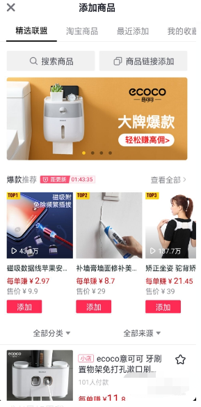 我們可以直接添出現(xiàn)的產(chǎn)品,必須要添加10個產(chǎn)品,或者是如果我們有淘寶店鋪,店家淘寶商品,復(fù)制產(chǎn)品鏈接到搜索框。