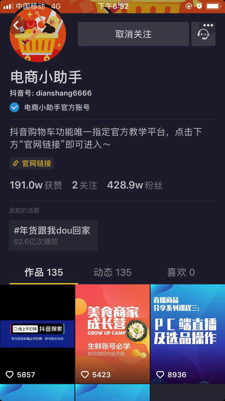也可以直接關(guān)注抖音賬號(hào)@抖音電商小助手 ,@抖音電商小助手是抖音電商官方賬號(hào),會(huì)更新關(guān)于抖音直播電商以及商品櫥窗相關(guān)的活動(dòng)通知、規(guī)范更新以及玩法分享。