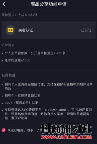 目前最新的抖音直播電商開(kāi)通門檻為: