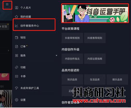 抖音官方對外發(fā)布的《抖音創(chuàng)作者內(nèi)容規(guī)范》是每位創(chuàng)作者都應(yīng)遵守的,創(chuàng)作者可以在“我“的界面中點(diǎn)擊右上角進(jìn)入”創(chuàng)作者服務(wù)中心“,點(diǎn)擊”創(chuàng)作者學(xué)院“自行查看抖音中的相關(guān)規(guī)則。
