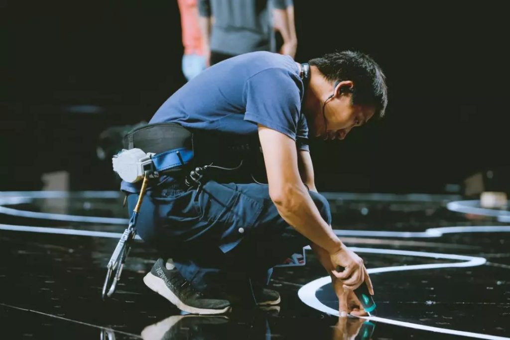 精細(xì)復(fù)雜的舞臺(tái)道具,需要像嬰兒一樣精細(xì)呵護(hù)。只有確定每一個(gè)細(xì)節(jié)都準(zhǔn)確,才能夠呈現(xiàn)出最佳效果。照片里的道具組工人正在調(diào)整舞臺(tái)上的細(xì)節(jié)。