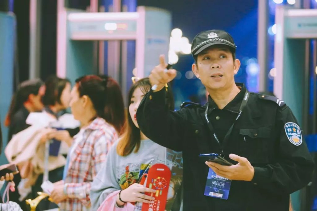 他們是靠譜的指路人,也是進(jìn)場(chǎng)所有人的安全后盾。距離演出不到一小時(shí),照片中的保安熱情地向問(wèn)路的觀眾指明方向。