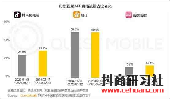 QuestMobile:抖音、B站直播業(yè)務增長顯著,快手穩(wěn)定50%