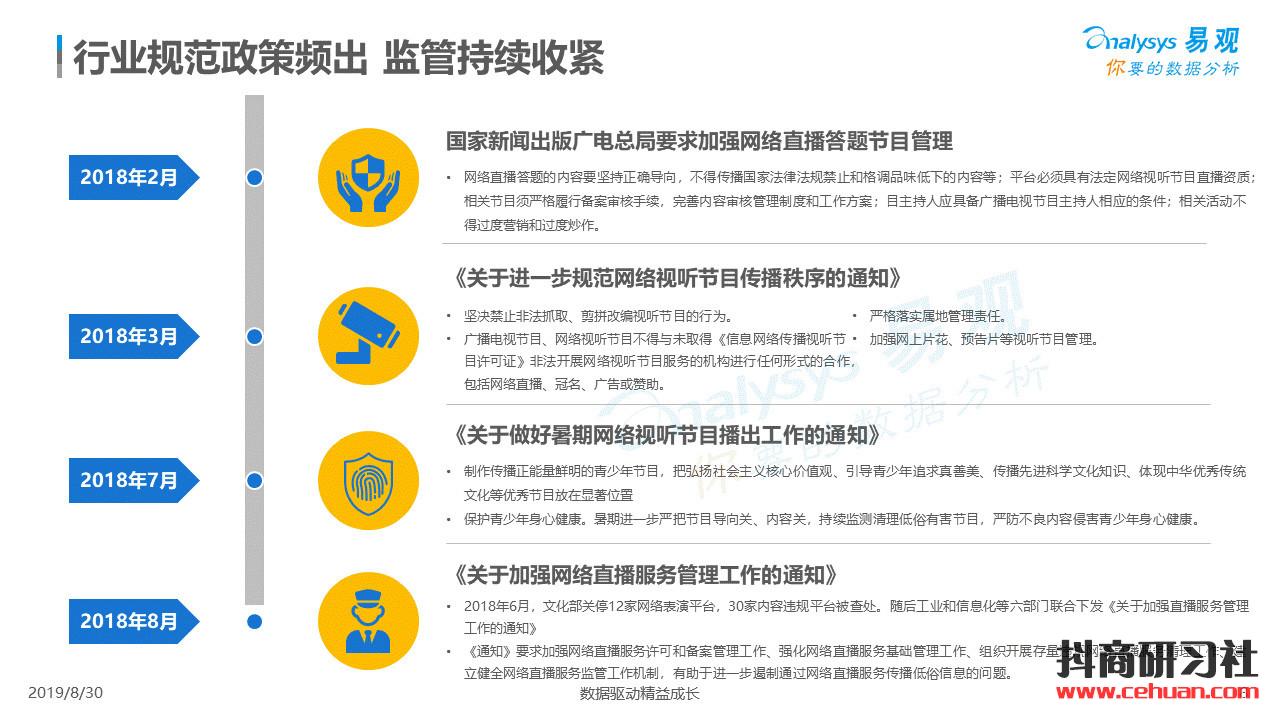 到2018年,行業(yè)規(guī)范政策頻出,監(jiān)管持續(xù)收緊。娛樂直播平臺的業(yè)務(wù)也開始逐漸走向正規(guī)化,業(yè)務(wù)模式成熟,市場格局穩(wěn)定。
