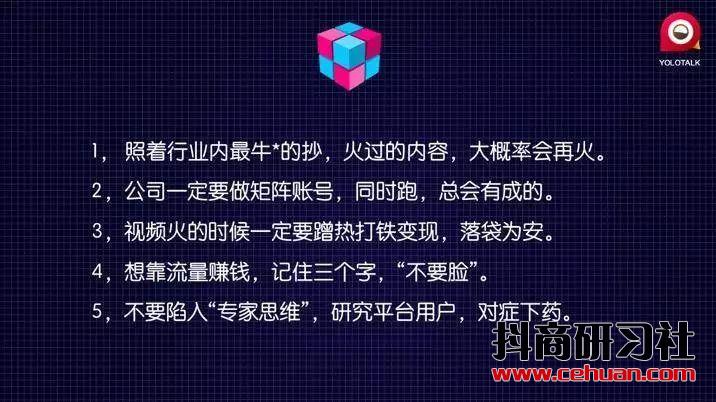 我們有很多3000萬,5000萬以上播放量的視頻大多用的就是這種分析同行業(yè)大號熱門內(nèi)容,快速跟進模仿的辦法。▲節(jié)選覃流星老師抖音分享課程ppt