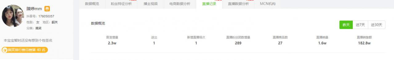 除了羅永浩入駐抖音開啟直播帶貨,抖音上不少耳熟能詳?shù)拇骎都已經(jīng)陸續(xù)開始直播帶貨變現(xiàn)。粉絲1100萬+的抖音賬號@陳婷mm ,一場直播帶貨近兩百萬;還有抖音“最難嫁”女網(wǎng)紅@祝曉晗一場直播帶貨5萬單,漲粉40萬+(圖片來自飛瓜數(shù)據(jù))