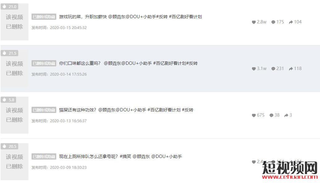 通過飛瓜數(shù)據(jù)我們可以看到該賬號刪除 了一些點(diǎn)贊比較低的視頻 ,會(huì)讓主頁信息一目了然,持續(xù)提升播放量高 的視頻,增加賬號熱度(圖片來自飛瓜數(shù)據(jù))