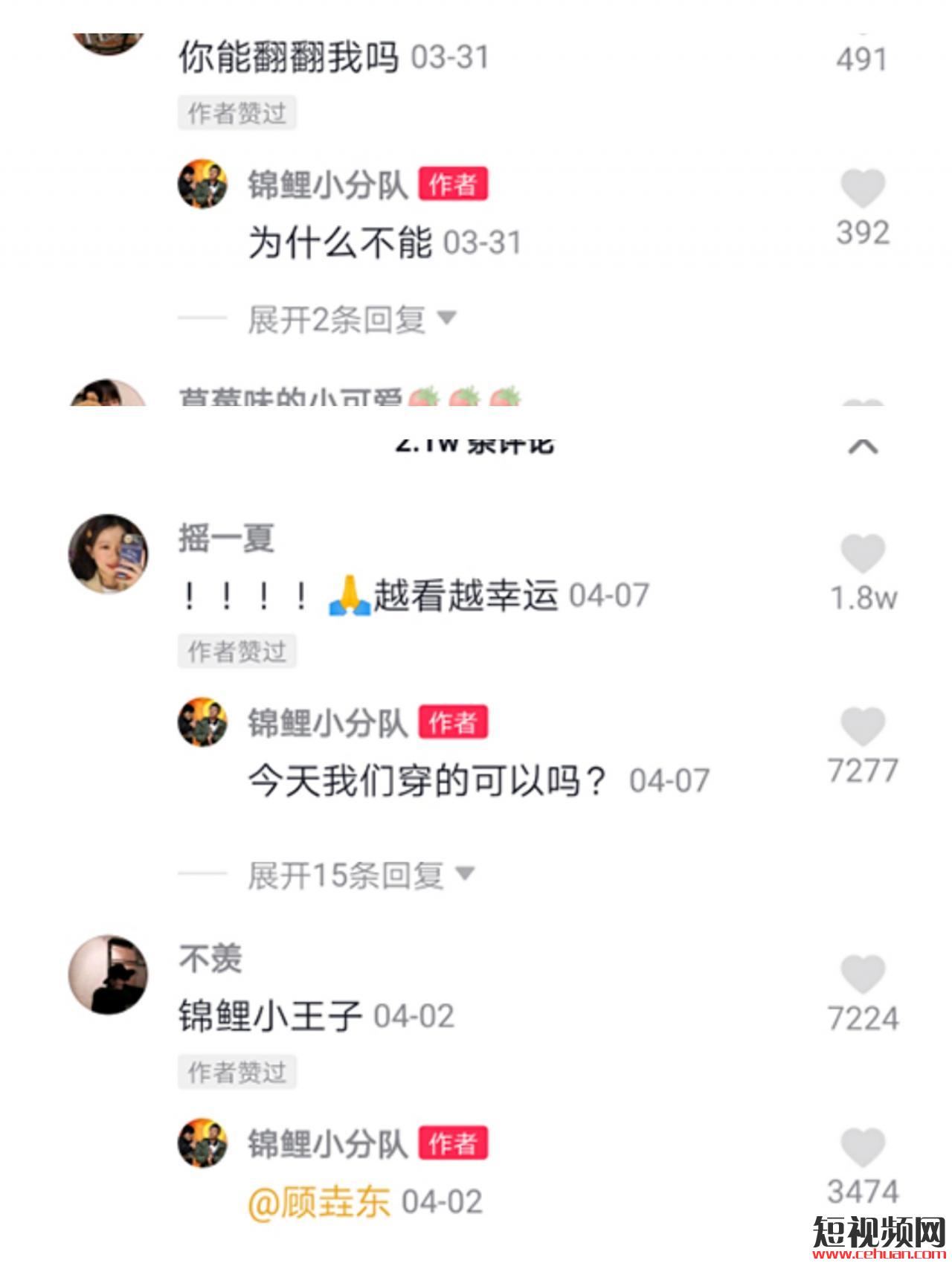 和這個(gè)賬戶的ID【錦鯉小分隊(duì)】 一樣,視頻內(nèi)容是以自己的好運(yùn)氣為主,進(jìn)行一系列的反轉(zhuǎn),這個(gè)賬號的主要人設(shè)就是好運(yùn)氣 ,粉絲們也都會(huì)真的把賬號當(dāng)做錦鯉一樣 在留言區(qū)許愿,求好運(yùn)。(圖片來自抖音)